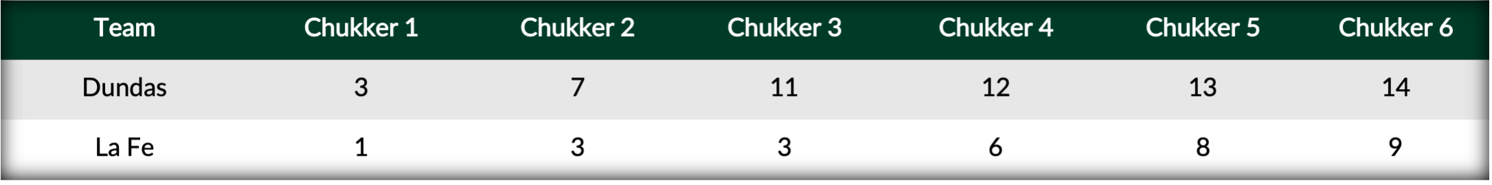 In the second semifinal, Obregon and de Narvaez Jr. reached the scoreboard first for Dundas, as their defensive efforts managed to La Fe’s formidable shooter Elizalde to one goal from the field. Adding three second, Dundas sized control of the third chukker on four unanswered goals, including two from Obregon to take a dominant 11-3 lead at the break.