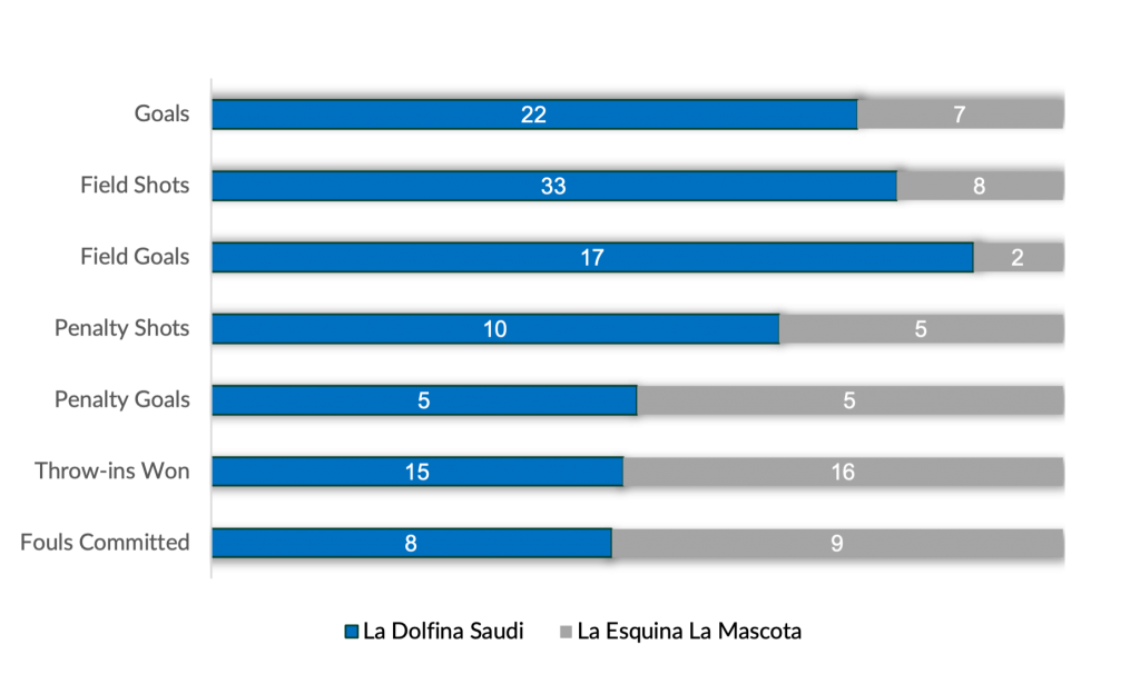 Overpowering their competition from the outset, 40-goal La Dolfina Saudi blazed their way to a second consecutive victory with a powerful first half. Led by trio of Adolfo Cambiaso, Poroto Cambiaso and Nero from the field, 47% accuracy in open play resulted in a combined nine goals. Struggling to establish an offensive rhythm, La Esquina La Mascota managed just four shots with their first goal coming off the mallet of Zubiaurre in the fourth, as La Dolfina Saudi took a dominant 11-1 lead into the break.