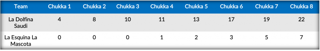 Maintaining their explosive firepower in the second half, the youngest Cambiaso led La Dolfina Saudi with four goals in the field and two at the penalty line. Taking advantage of their penalty opportunities, La Esquina La Mascota converted each of their attempts, with Ignacio Laprida going 5 for 5. Assembling an impressive 10-goal performance from Poroto Cambiaso, La Dolfina Saudi’s ability to strike early and often with accuracy and efficiency resulted in the resounding 22-7 win.