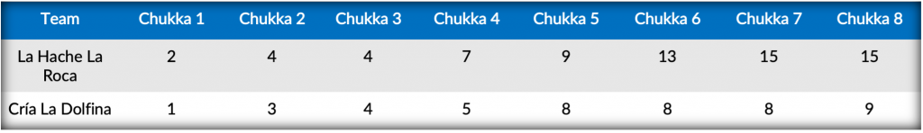 Breaking through in the second half, La Hache La Roca’s duo of Caset and Pieres added five more field and three conversions to the scoreboard. Despite three penalty goals from Cavanagh for Cría La Dolfina, their difficulties from the field allowed La Hache La Roca to control the pace of play and ultimately seal the 15-9 victory.