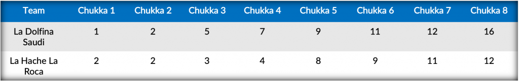 Concluding play in Zone A, undefeated heavyweights La Dolfina Saudi (Adolfo Cambiaso, David “Pelon” Stirling, Poroto Cambiaso, Juan Martin Nero) went head-to-head against La Hache La Roca (Pablo Pieres, Hilario Ulloa, Guillermo Caset, Francisco Elizalde).