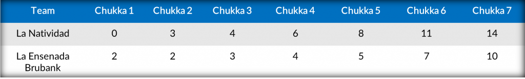 The first La Natividad goal from someone other than a Castagnola came off the mallet of Pieres halfway through the fifth chukka to help his team inch one goal further ahead, but La Ensenada Brubank turned to Bigatti to provide a response. Adding his third and fourth goals in the sixth chukka, Bigatti kept his team within striking distance, facing an 11-7 deficit entering the final seven minutes of play. Any hope of a comeback was thwarted in the opening minutes as Camilo Castagnola scored from the field in the opening minute, followed by consecutive penalty conversions from Pieres to put the game out of reach. La Natividad completed the 14-10 victory to join La Dolfina Saudi with a 2-0 record, with the winner of their upcoming matchup securing their place in the Tortugas Open final.