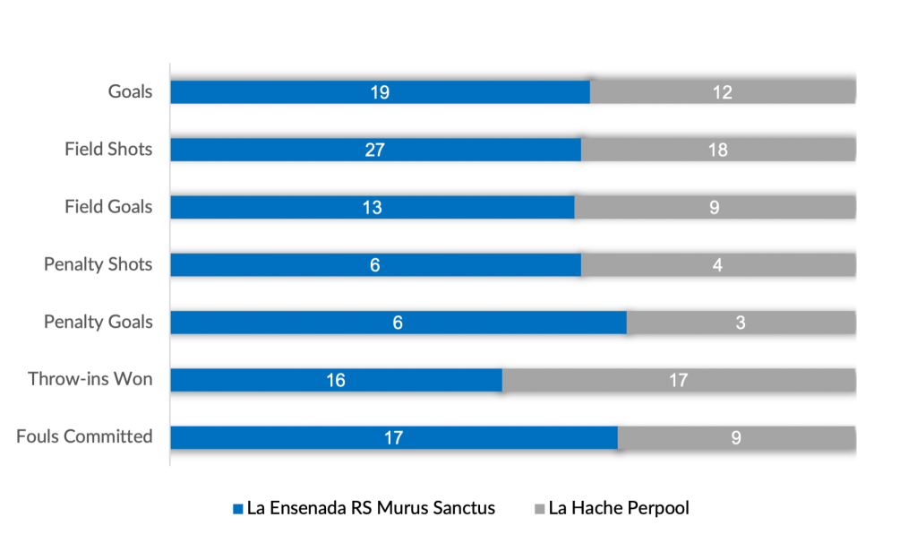 Kicking-off play with a goal from La Ensenada RS Murus Sanctus’ Caset, La Hache Perpool was on the offensive attack early with goals from Cernadas, Guiñazu and Pittaluga. Running into foul troubles in the second, Caset stepped up to the line for three successful conversions to give La Ensenada RS Murus Sanctus a 5-4 advantage. Finding space in the field, a back-and-forth exchanged ensued with Caset and del Carril striking for La Ensenada Rs Murus Sanctus, as La Hache Perpool kept themselves within one on goals from Guiñazu and Ulloa to take an 8-9 deficit into the break.