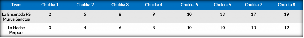 Outscoring their opponents to open the fifth, back-to-back goals from Pittaluga and Ulloa brought La Hache Perpool even at 10-all, but La Ensenada’s Bigatti kicked off a dominant two-chukker run for La Ensenada RS Murus Sanctus. Scoring seven goals on eight shots, a complete team effort saw each teammate reach the scoreboard, while a shutdown defensive stand held La Hache Perpool to just one shot from the field to take a 17-10 lead. Despite back-to-back goals from Pittaluga to open the final chukka of play, La Ensenada’s commanding second half was capped off with goals from Bigatti and Caset to earn the 19-12 victory and Casablanca Cup.