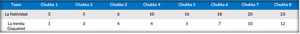 In the second contest of the doubleheader, La Natividad (Camilo Castagnola, Pablo Pieres, Bartolome Castagnola Jr., Ignatius Du Plessis) faced La Irenita Gsquared (Segundo Bocchino, Santiago Loza, Martin Podesta, Felipe Dabas), with 10-goaler Castagnola leading La Natividad scoring twelve-goals in an impressive performance powering La Natividad’s high-octane offensive to the 23-12 win.