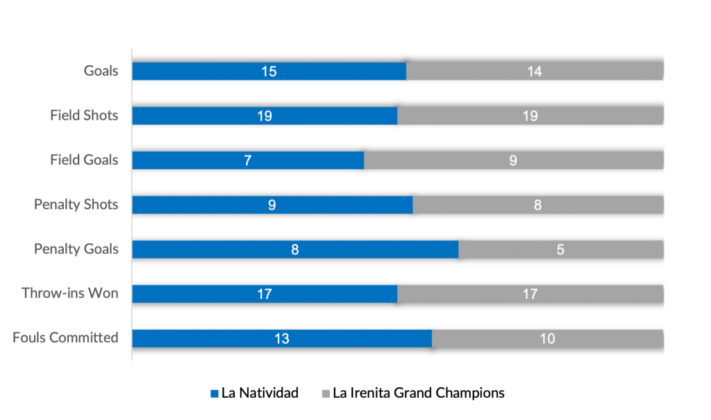 Converging on Field 1, the first spot in the Argentine Open was up for grabs, as a highly contested battle between La Natividad and La Irenita Grand Champions kicked-off with an early goal from La Irenita Grand Champion’s Mac Donough. Responding from the field and the penalty line for La Natividad were the Castagnola brothers, but Britos was quick to strike from the field and tie the match 2-all. Establishing a rhythm for La Irenita Grand Champions, back-to-back goals from Britos temporarily vaulted his team on top, but a run of three goals from Castagnola, and Du Plessis tied the match once more. Deadlocked in the final frame of the half, Castagnola and Britos each struck for their respective teams from the field to bring the play to a close 6-6 at the break.