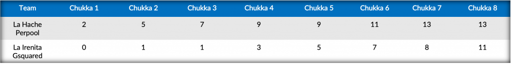 Taking advantage of La Hache Perpool’s back-to-back fouls in the fifth, Bocchino struck once more at the line and combined with a successful drive from Dabas to cut La Irenita Gsquared’s deficit to three, but La Hache Perpool was quick to return the favour with two conversions from Pittaluga. Following two unanswered from Guiñazu to open the seventh, Bocchino drove his fifth conversion on the day through the posts to keep La Irenita Gsquared in contention. Pushing for one final comeback, a combined effort from Loza, Dabas and Podesta in the field brought La Irenita Gsquared within striking distance and despite La Hache Perpool’s inability to score in the chukka were ultimately able to hold on for the 13-11 victory and claim their entry in the 2023 Triple Crown.