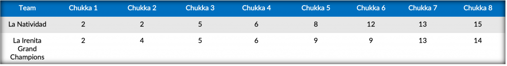 In the second match of Friday’s doubleheader, La Natividad (Camilo Castagnola, Pablo Pieres, Bartolome Castagnola Jr., Ignatius Du Plessis) went head-to-head against fellow undefeated team in La Irenita Grand Champions (Juan Britos, Francisco Elizalde, Pablo Mac Donough, Juan Martin Zubia), as a phenomenal eleven-goal effort including eight from the penalty line from top tournament scorer Castagnola secured La Natividad’s spot in the Argentine Open final with the 15-14 victory.