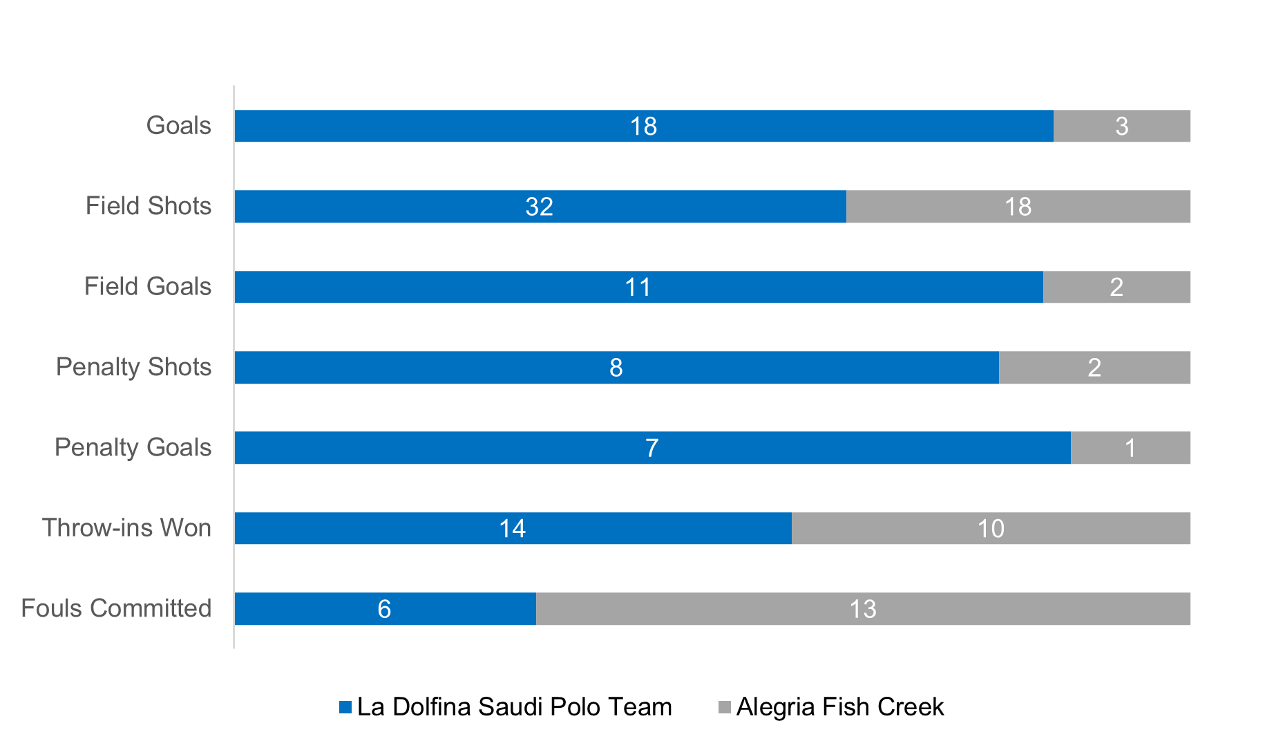 Qualifying for a place in the final leg of the Triple Crown, Alegria Fish Creek faced a dominant La Dolfina Saudi Polo Team who produced an emphatic victory behind the 10-goal, four assist effort from Adolfo Cambiaso. Providing energy early in the match, Alegria Fish Creek scored early, but were held scoreless over the final five chukkas as La Dolfina Saudi Polo Team dominated possession to outshoot their opponents 32-18. Leaving little doubt of the outcome, La Dolfina Saudi Polo Team shot above 50% in the second half to claim the decisive 18-3 win.