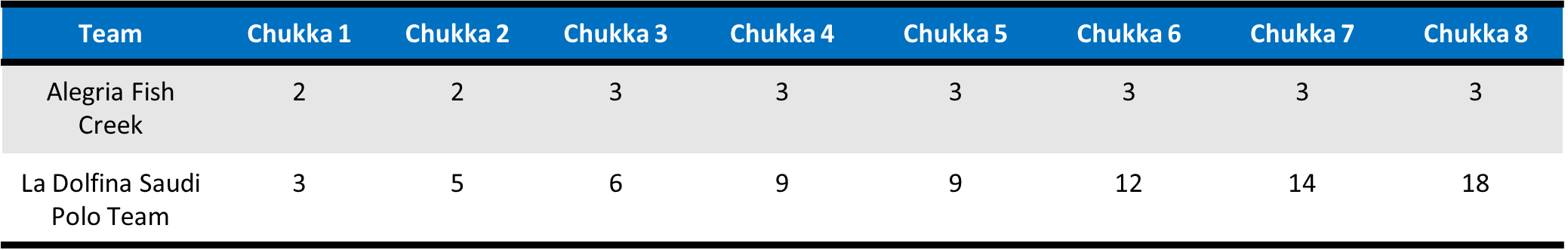 Turning their focus to the defensive end, La Dolfina Saudi Polo Team thwarted any Alegria Fish Creek attack to hold their opponents scoreless throughout the entire second half. Despite failing to find the goal in the fifth chukka, La Dolfina Saudi Polo Team’s Diego Cavanagh drove forward to contribute two goals, while a balanced attack saw Elizalde and Stirling add their names to the scoresheet in the seventh chukka. Holding the double-digit advantage, La Dolfina Saudi Polo Team completed the dominate victory with Cambiaso finishing with 10 goals in their quest for a ninth consecutive title.