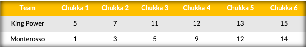 In a game that came down to the final chukka, the two evenly matched teams answered each other in field shots, with King Power taking the narrow edge on accuracy shooting 61% over Monterosso’s 53%. Combining for only eleven penalties throughout the match with both teams converting all their attempts, the difference ultimately came down to the performance of Nicolas Pieres. Leading King Power with eleven goals, Pieres’ ability gain possession in the final minutes of play cemented the hard-fought win.
