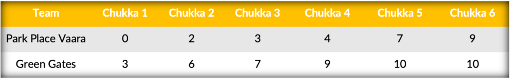 Continuing their strong play, Green Gates held Park Place Vaara to a single goal off the mallet of Merlos. Ramping up their offensive efforts in the fifth, Park Place Vaara’s Ulloa initiated an unanswered three-goal run to pull themselves within three. Pushing Green Gates to the brink, Park Place Vaara continued their comeback bid, shutting out Green Gates in the sixth and posting two more onto the scoreboard. Despite taking only eight shots from the field and scoring three times in the second half, the lead established by Green Gates in the first half was just enough to stave off Park Place Vaara and earn Green Gates the Cooch Behar Cup 10-9.