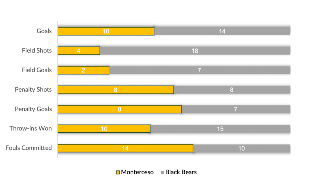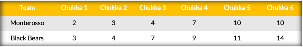 Producing a relentless attack, Black Bears generated eighteen shots from the field while dialing in on defense to hold Monterosso to only four shots in open play. Keeping themselves in contention, Monterosso took advantage of their penalty opportunities shooting 100%, with all eight of their conversions coming off the mallet of Ignacio Toccalino. Utilizing their own penalty shooting, Black Bears went 7 for 8 at the line to combine with 39% shooting from the field to earn the four-goal win.