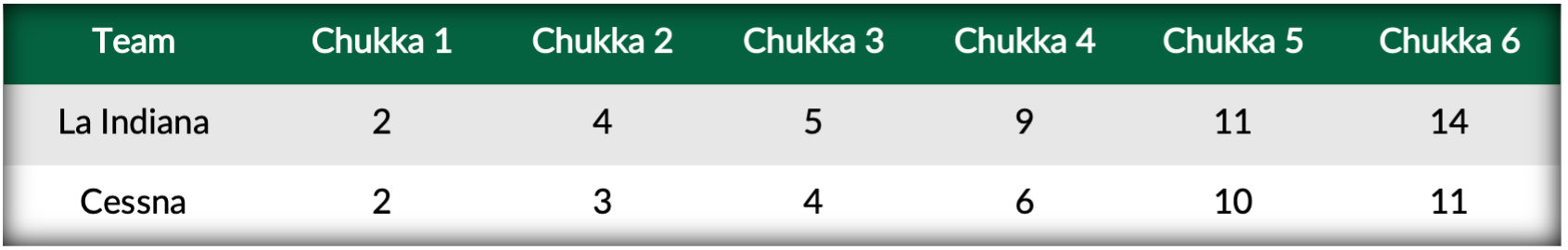 After a successful first half controlling ball possession, La Indiana’s Criado Jr. was back on the line to begin the fourth chukker with back-to-back conversions to increase the lead to three. The pace of play continued to slow with the teams exchanging penalty goals as Astrada began Cessna’s comeback attempt. Leading his team’s attack with four second half goals, including three from the penalty line, Astrada breathed life into Cessna’s offense along with the strong play of Camp Campbell as the game quickly became a close contest with Cessna trailing by just one entering the sixth chukker.