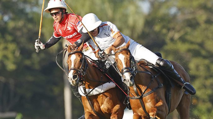 Rain postponed Sunday’s feature game at the International Polo Club Palm Beach, but play resumed on Monday as Park Place and Pilot battled into overtime, with Facundo Pieres scoring the golden goal to push Pilot to the top of Bracket 1. In the second match of the day, Scone also remained undefeated with a narrow victory, including a four-goal performance from Kristos “Keko” Magrini to defeat La Fe 8-7.