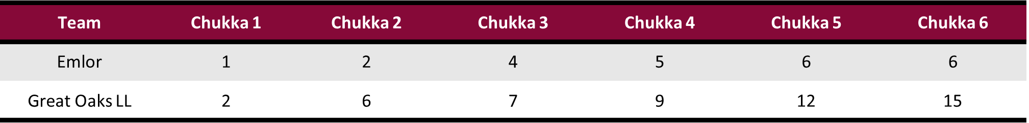 In the opening stages of the game, Castagnola scored back-to-back goals to give Great Oaks LL the early 2-0 lead as Emlor was unable to establish consistent possessions in the attacking half. Accounting for his team’s first four goals, Castagnola was making his mark for Great Oaks LL, while an organized defense limited Emlor to just one goal each from Agustin Merlos and Alfredo Bigatti by the end of the second chukka. Before the chukka expired, Dillon Bacon drove forward and scored two goals in quick succession, extending the Great Oaks LL lead to four. Emlor’s duo of Merlos and Bigatti brought them back within three by halftime, but Great Oaks LL continued to control the ball in open play entering the second half.