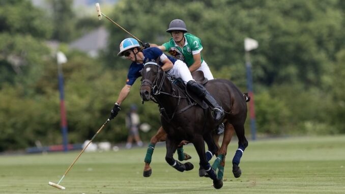 Next up was a trophy match on the Princes’ Ground. Jean-Paul Luksic’s Gaston Polo Team were looking for their first victory in this tournament and not only headed home with a win, but also the Richard Watt Cup. They narrowly beat Desert Palm 10-9, although they had been comfortably ahead for much of the game. They were leading 7-3 at the start of the fourth. Desert Palm had a change of line-up today as their patron, Tariq Albwardy, was available to play for the first time. This meant that the six-goaler Javier Guerrero could be part of the team too, while Mia Cambiaso and Kian Hall had to stand down. Maybe it was the change of personnel, but Desert Palm struggled to recreate their previous success in the early chukkas. Plenty of strong attacking and defensive play from Gaston’s Guillermo “Sapo” Caset and Cruz Heguy also made life difficult for Desert Palm. Albwardy’s team started getting into gear in the fifth with some great teamwork from Barto Castagnola and Guerrero. That said it was Gaston’s patron, Luksic who finished the chukka with a fabulous field goal, picking up a superb pass from Caset, to put his team into double figures (10-6) heading into the sixth. Beltran Laulhe led the Desert Palm fight back early in the final chukka with a lovely goal, followed by Castagnola converting a penalty with 20-odd seconds left on the clock. Time was against Desert Palm though and it was Jean-Paul Luksic who received the Richard Watt Cup, named in memory of a former Chairman of Guards Polo Club, from General Sir Redmond Watt.