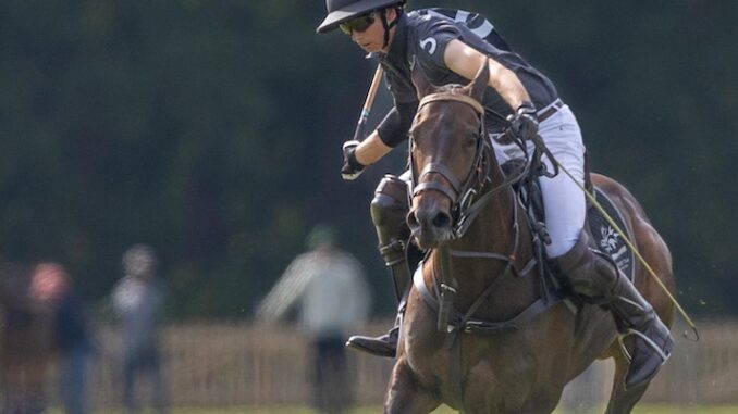 The action moved back to Guards Polo Club, and the Club’s Princes’ Ground, for the battle between Desert Palm and Park Place. Mia Cambiaso, sporting her family’s distinctive Argentine flag helmet, was in the number one shirt for Desert Palm. This team secured a narrow, one goal lead after the first two chukkas (6-5) but Park Place were always in the mix and did not let Desert Palm relax for a moment. Horse races between the nine-goalers Barto Castagnola and Hilario Ulloa, were a regular occurrence in their bid to gain supremacy on the field. With the scores tied at the end of the fifth (10-10) spectators were hoping that this match would head into extra time like two of yesterday’s games. Desert Palm had other ideas though. Kian Hall found the flags first followed by Castagnola, who successfully converted his cousin Mia’s hard work to make it 12-10 in the sixth chukka. Mia herself then scored a lovely goal to confirm Desert Palm’s victory and highlighted her own ability, which had shone throughout this match. With both her father and grandfather watching from the sidelines it was the perfect time to bring her A game to the tournament.