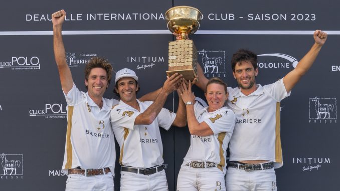 This is the first victory in a 16-goal tournament* for French captain Isabelle Lerenaudie who has been playing at this level for only the second season. To get to this level, she put together a team made up of the Zavaleta family, which has remained the same since last year. Two brothers, Simon and Ramiro, who know each other by heart, led by a cousin, Juan Martin, a regular at the world’s top level, taking part in the Argentine Open, the highest level tournament in the world. It was a complicated game for Barrière, who was led until the fourth chukker, sometimes by as much as 4 goals, “but I’ve always reminded my players that a game is long and everything can happen very quickly in this sport, and that’s what happened”, explained Juan Martin Zavaleta. Simon Zavaleta finally gave his team a first lead at the very beginning of the fifth (and last) chukker, before Barrière again fell behind, and it was on two penalties from Juan Martin that Barrière sealed its first victory in this major event. It was also the first victory for his cousin Simon (Ramiro had already won it) and captain Isabelle Larenaudie: “It’s phenomenal”, jubilated the first woman to win the Coupe d’Or. Winning with this family, with two Zavaleta who have never won it before, is huge. I still can’t believe it. It was a very tough match, but tonight it’s a big party.” The joy of Juan Martin Zavaleta, named most valuable player of the final (he scored 10 goals on Sunday), who has many other victories to his name, was no less happy: “It’s incredible. Already, winning the Coupe d’Or is something you think about all the time. It’s one of the most beautiful tournaments to be played in France, and to win it as a family… there are no words to express the emotion it creates. It’s an important victory in one’s career, and now it’s done. Deauville is a tournament that will go down in the history of our sport.”