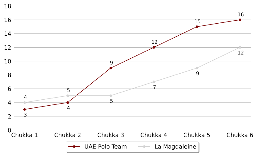 First up a flowing and running game for UAE against La Magdeleine. Despite a strong start, which no doubt rattled the established UAE side, La Magdeleine were unable to maintain their momentum, UAE overtaking in the 3rd chukka to take a lead they would hold on to until the end of the match. While La Magdeleine did not struggle for possession, racking up an impressive 20 shots on goal, it was all down to the conversion percentage as UAE slotted home 10 out of 16 of their shots to goal from the field – a 62% accuracy rate compared to La Magdeleine’s 45%. UAE were unstoppable from the 3rd chukka on, Lukin Monteverde an attacking force to be reckoned with, and rode to their 3rd win of the tournament, remaining unbeaten so far.
