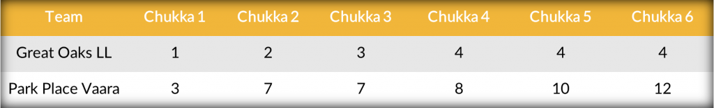 Exchanging goals early in the second half, it seemed like the two teams would battle into the final chukka, but Park Place Vaara’s defense changed the game over the final two chukkas. Preventing Great Oaks LL from scoring a single field goal since the first chukka, Park Place Vaara extended their lead on consecutive goals from Britos. Struggling to generate enough scoring chances at goal, Great Oaks LL saw their deficit widen as they were unable to challenge Park Place Vaara in the late stages of the match. Holding Great Oaks LL scoreless over the final two chukkas, Park Place Vaara cemented their impressive victory with final goals from Ulloa and Santos Merlos for the statement 12-4 victory against the previously unbeaten Great Oaks LL.