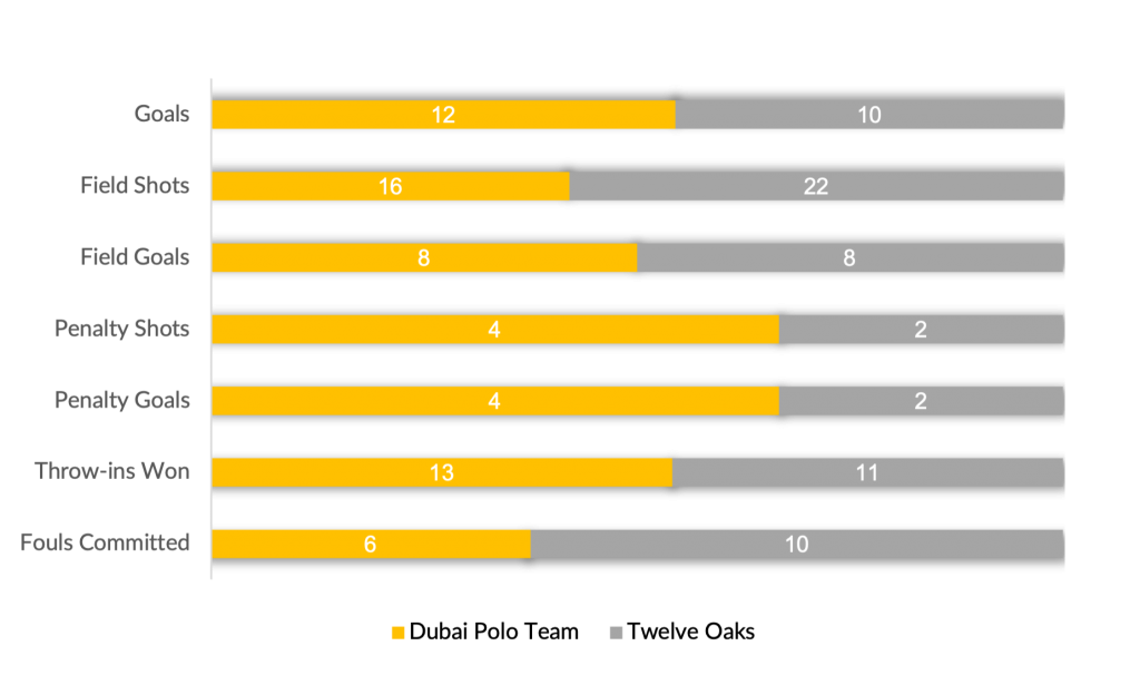 Following a goal from Dubai Polo Team’s Jeronimo de Carril to open the scoring in the fourth, Twelve Oaks assembled their first string of goals, as Laprida and Charlie Wooldridge answered from the field to score three and cut their deficit to two. Halting the progress of a driving Twelve Oaks, Castagnola dominated play, hitting the goal four times, and going 3 for 3 at the penalty line to increase Dubai Polo Team’s lead 11-7. Digging in to attempt a final comeback, a strong defensive stand from Twelve Oaks was accompanied by goals from Laprida and Pittaluga. Scoring three in the final chukka of play, including Twelve Oaks’ second conversion of the match, the last-minute efforts fell just short to Castagnola’s eight on the day, giving Dubai Polo Team just enough room to take the match 12-10 and remain undefeated.