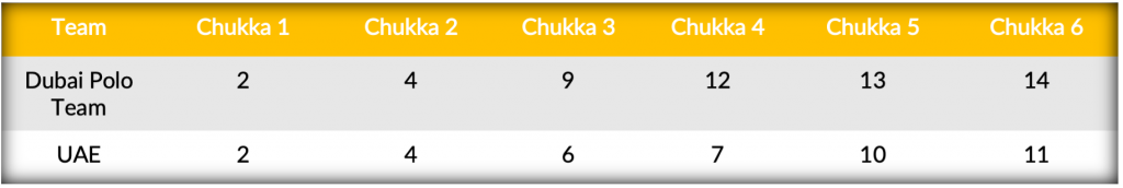 Relying on the momentum established in the third chukka, Dubai Polo team continued to score at a frantic pace, generating offense from both the field and the penalty line. Scoring four of the first five goals in the second half, Dubai Polo Team received contributions from Castagnola, as well as Del Carril and Matt Perry to extend their lead further to six. Displaying fight over the final two chukkas, UAE’s Beresford sent a Penalty 2 through the posts along with a field goal from Lucas Monteverde Jnr, but UAE still found themselves trailing by three and a difficult task in completing the comeback with one chukka to play. Scoring UAE’s fourth straight goal, Beresford helped his team inch closer, but Camilo Castagnola hit his game-high tenth goal of the match as Dubai Polo Team took their place in the semifinals with the 14-11 victory.