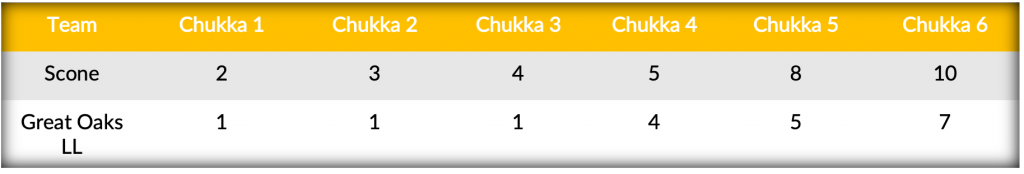The second quarterfinal featured the return of Scone’s father-son duo in Adolfo and Poroto Cambiaso to the elimination stages. Finding their way into the quarterfinals with their elite defense, Scone limited Great Oaks LL’s chances throughout the entire first half. A Penalty 2 conversion for Poroto Cambiaso opened the scoring and doubled Scone’s lead to two after the entered with a one-goal advantage on handicap, but Great Oaks LL’s Juan Martin Nero quickly provided a response to leave the score at 2-1. However, that would be the only goal Great Oaks LL would score in the rest of the first half as Scone’s defense prevented Great Oaks LL from reaching the penalty line, while inaccurate shooting resulted in nine consecutive misses from the field. A field goal from Adolfo Cambiaso in the second chukka and a second Penalty 2 conversion for Poroto Cambiaso provided the only offense of the opening three chukkas, leaving Scone ahead 4-1 at the half.