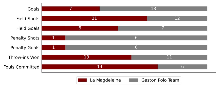 It was Gaston who reigned triumphant after their match up with La Magdeleine. A strong start gave them the edge from the first whistle and they remained in the lead throughout, Nero proving why he was 10 goals for so many years.