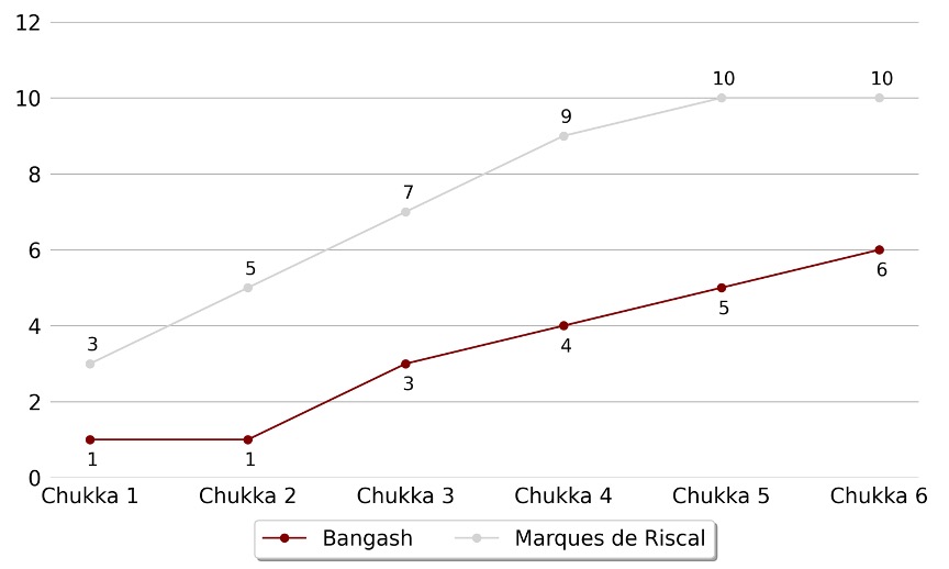 It was Bangash’s first run out in the 2024 high goal season and they were up against Alejandro Aznar’s Marques de Riscal side. Haing played together all season so far, Sapo Caset, Chris Mackenzie and Santiago Cernadas showcased some excellent team polo overpowering the new side and gaining an early lead which they kept throughout scoring a solid 2 goals per chukka to remain in the lead. Bangash also gave away an unfortunate amount of penalty scoring opportunities resulting in an easy win for the Marques de Riscal side.