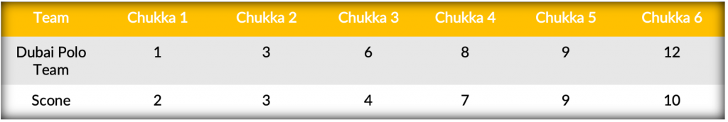 Scoring 17 goals in their opening game, Dubai Polo Team’s leading scorer picked up where he left off as Camilo Castagnola scored his first of nine goals to set an early tone from the field. Scone’s Adolfo Cambiaso matched Castagnola’s early field goal, while teammate Rosendo Torreguitar found the posts on back-to-back drives to account for a three-goal Scone run. However, the momentum swung back in favour of Dubai Polo Team, initiating an unanswered three-goal response of their own that included two more conversions from Castagnola. After the early exchange of goals, offense continued to come via the penalty line as Dubai Polo Team edged ahead on two more penalty conversions to take a 6-4 lead into the break.