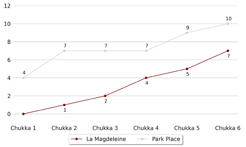 Having lost all of their previous games Park Place’s chances at a quarter finals spot were already dashed but a win against La Magdeleine means they can exit the tournament with their heads held high. La Magdeleine put heart into the game, reaching the goal 24 times but unable to complete the goals needed to make the difference on the scoreboard, while Park Place showed glimmers of their Queen’s Cup performance with deadly accurate plays up front and from the penalty line ensuring the win on the day. Park Place started strong with 7 goals in the first 2 chukkas to La Magdeleine’s 1 and they were able to maintain the lead throughout, despite 2 goalless chukkas in the middle, to seal the win and leave La Magdeleine without a win in the tournament.