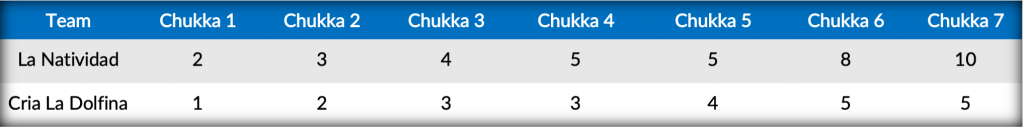 Kicking-off the fifth chukka, a lone goal from Cria La Dolfina’s Cavanagh was immediately answered in the six in the field from Camilo Castagnola and Pieres to maintain their three-goal lead. Looking to finally put away the competition, a conversion followed by field goal off the mallet of Camilo Castagnola combined with a shoutout defensive chukka ensured La Natividad the 10-5 victory.