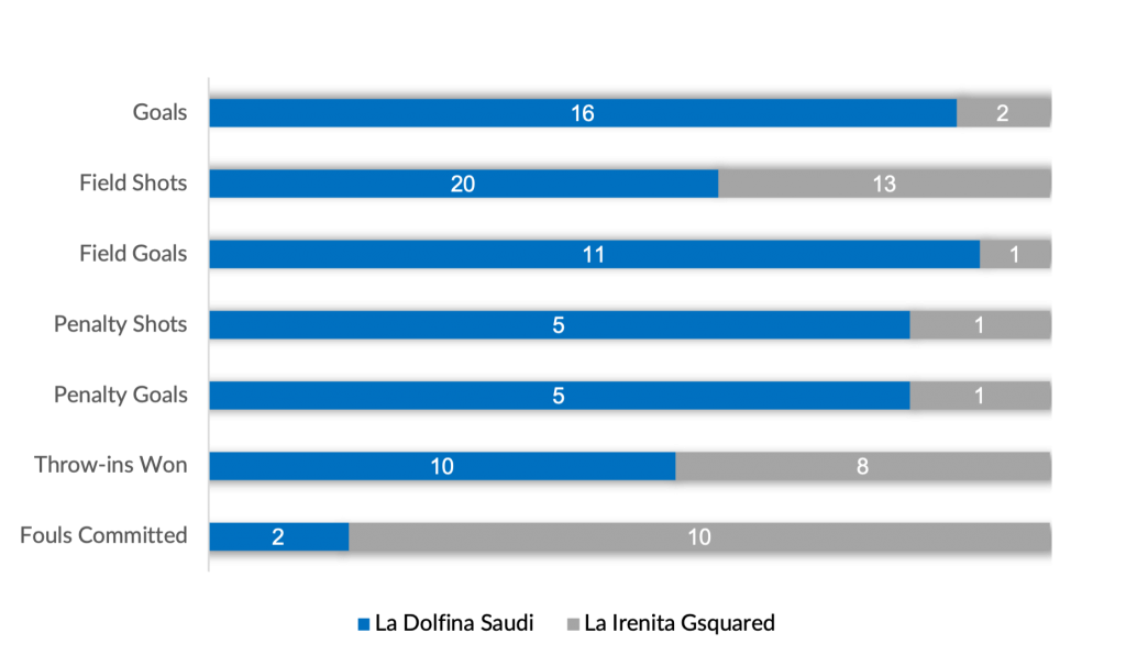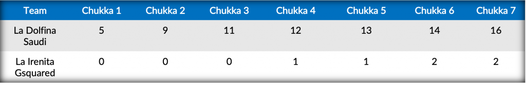 Coming off an impressive 15-5 victory against La Ensenada RS Murus Sanctus, La Dolfina Saudi was back on the offensive attack on Sunday, mounting an impressive five-goal chukka opening chukka including three conversions from the youngest Cambiaso. Mounting offensive pressure on their struggling opponents, six more goals for La Dolfina Saudi saw contributions from Nero and Stirling in the field to give La Dolfina Saudi an impressive 12-0 lead. Finally finding the scoreboard on a conversion from Bocchino, La Irenita Gsquared committed nine first half fouls and only managed three shots on goal, as La Dolfina Saudi went into the break with a formidable 12-1 advantage.