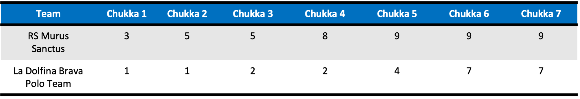Determined to make a push in the second half, Cambiaso would impress in the opening minutes of the fifth, scoring two consecutive goals. Taking just three shots from the field, RS Murus Sanctus would only find the goal once on a Caset penalty conversion. La Dolfina Polo Team continued to apply pressure on RS Murus Sanctus with Alejo Taranco finding the scoreboard for his only goal of the day as teammates Cambiaso and Guillermo Terrera managed to cut the deficit to just two. This would be as close to a comeback as La Dolfina Brava Polo Team would come and despite peppering the goal with seven shots, neither team would score in the final chukka and RS Murus would weather the second half storm from La Dolfina Brava Polo Team to take the second match of Zone A competition.