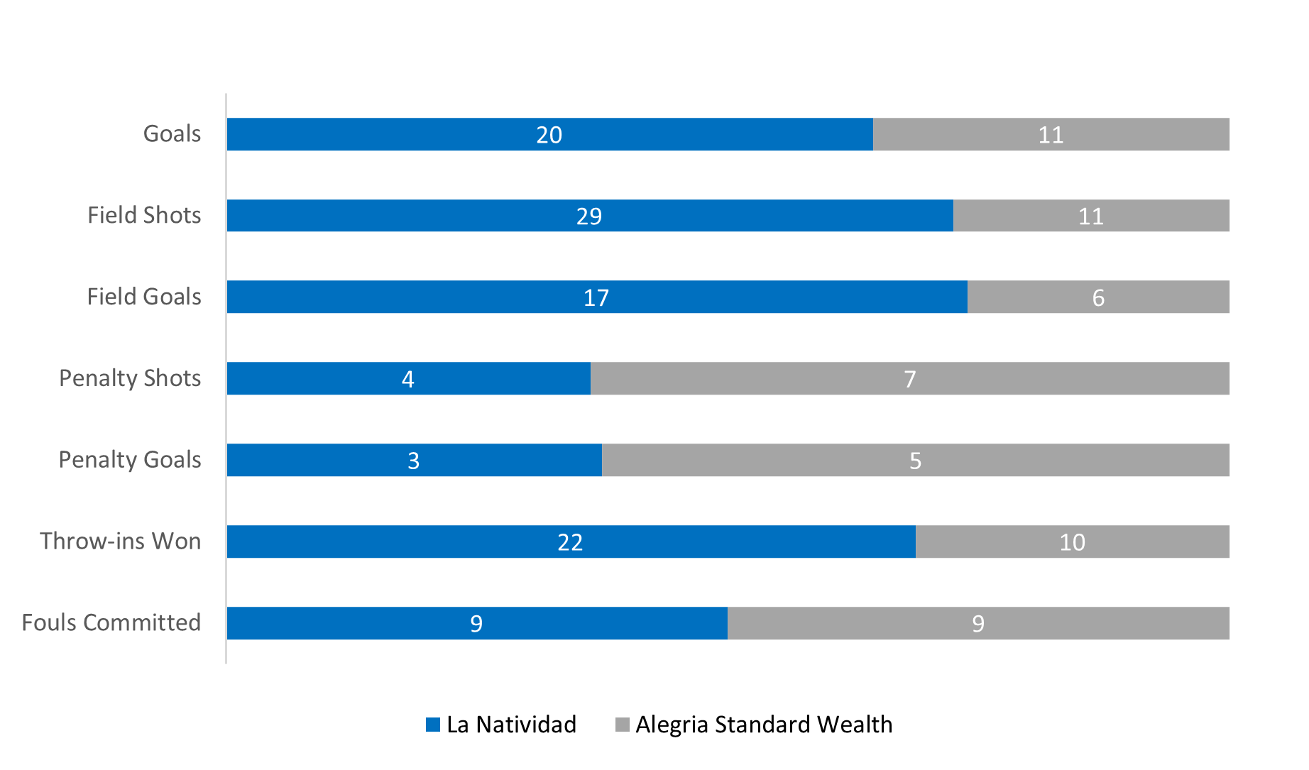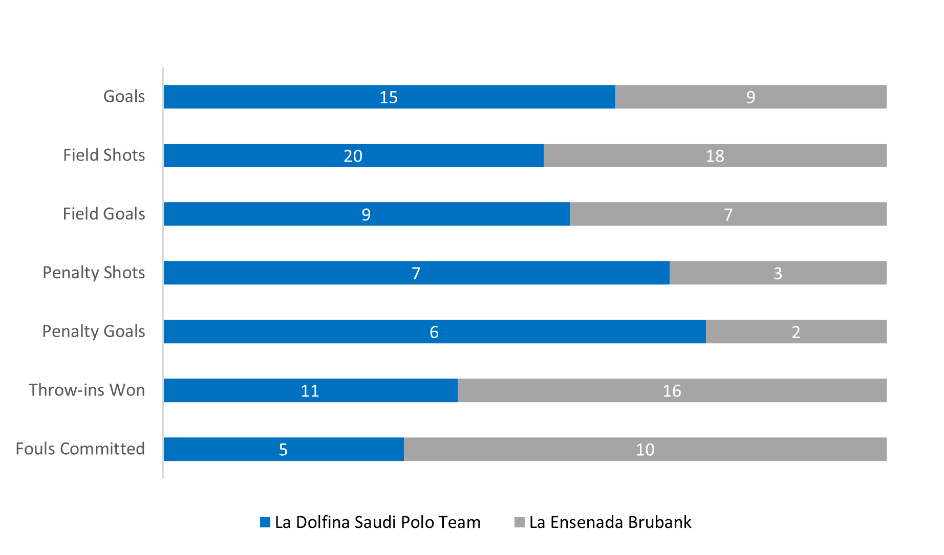 In one of their best showings of the season, La Natividad displayed an exceptional passing attack to shoot 59% and assist on 11 of their 17 field goals. The trio of Polito Pieres, Camilo Castagnola and Bartolome Castagnola provided at least five goals and two assists each, leaving Alegria Standard Wealth with a difficult task in slowing all three players. Dominating the throw-in line, La Natividad consistently won possession to overwhelm the Alegria Standard Wealth defense and claim the decisive 20-11 victory.