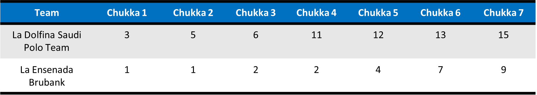 Focused on managing their lead, La Dolfina Saudi Polo Team did not overextend themselves in the final three chukkas, preventing any significant runs for La Ensenada Brubank. Two goals from both Bigatti and Juan Martin Zubia resulted in La Ensenada Brubank winning their first two chukkas of the match, but the difference on the scoreboard remained at six with one chukka remaining. Completing an exceptional performance, La Dolfina Saudi Polo Team added two goals, one each from Cambiaso and Cavanagh to claim the 15-9 triumph and turn their attention to La Natividad for a place in the final.