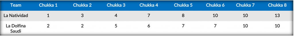 Outshooting La Dolfina Saudi from the field, a balanced effort from Camilo Castagnola, Bartolome Castagnola Jr. and Pieres set the tone for the team in green. Responding from the penalty line, Poroto Cambiaso sank two conversions as Adolfo Cambiaso added another from the field, as the father-son duo would ultimately account for all La Dolfina Saudi’s first half offense efforts. Striking with confidence and finding space in in the field, La Natividad’s ability to get multiple players on the scoreboard that included three assists from Camilo Castagnola gave La Natividad a narrow 7-6 advantage at the break.