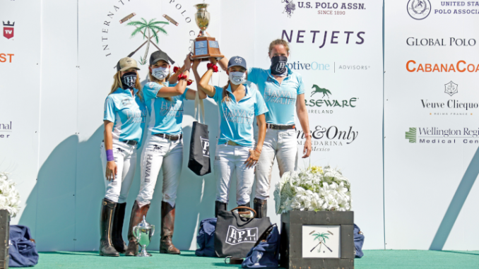 Gearing up again to compete in the 2020 U.S. Open Women’s Polo Championship® Semifinals after the tournament was postponed in March due to COVID-19, the field narrowed with two semifinalists forfeitures. This decision quickly sent Hawaii Polo Life and BTA/The Villages straight to the final on Saturday, February 27. Ready to defend their 2019 title with the return of Nina Clarkin, Hawaii Polo Life (Pamela Flanagan, Mia Cambiaso, Cande Fernandez-Araujo, Sierra Dunbar, sub. Nina Clarkin, sub. Dolores Onetto) added a new player to the roster while going up against the original all-American BTA/The Villages (Kylie Sheehan*, Paige Boone, KC Krueger, Tiffany Busch). Coming out well-organized and strong from the first chukker, Hawaii Polo Life led throughout the entire game to once again raise the prestigious women’s trophy 6-5.