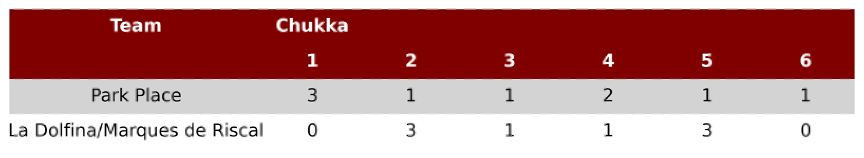 Park Place had started this match confidently with a 3-0 lead. Not surprisingly, the young and super talented La Dolfina/Marques de Riscal team came back strongly in the second chukka with three goals. Although Borodin scored a valuable goal at the start of this chukka which kept his team ahead by one (4-3) on the bell.