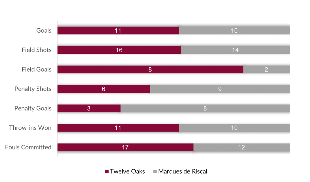 Moving to The Duke’s Ground, Twelve Oaks was in desperate need of a victory to keep their hopes alive, holding a 1-2 record entering their final match of league play against Marques de Riscal. A back-and-forth first half featured a tie on four different occasions with neither team conceding an inch. After a Penalty 3 from Pittaluga opened the scoring, Twelve Oaks struck again on a John-Paul Clarkin field goal as they found the quick start they needed. In search of their first victory, Marques de Riscal responded with consecutive goals from Santiago Laborde and Guillermo Caset to tie the game at 2-all. Relying on the penalty shooting of Caset, where he scored three of the final four goals of the half, Marques de Riscal matched a strong Twelve Oaks attack from the field. Following up his exceptional performance in the previous game, Charlie Wooldridge scored back-to-back goals to end the half, giving Twelve Oaks some momentum entering the break ahead 8-5.