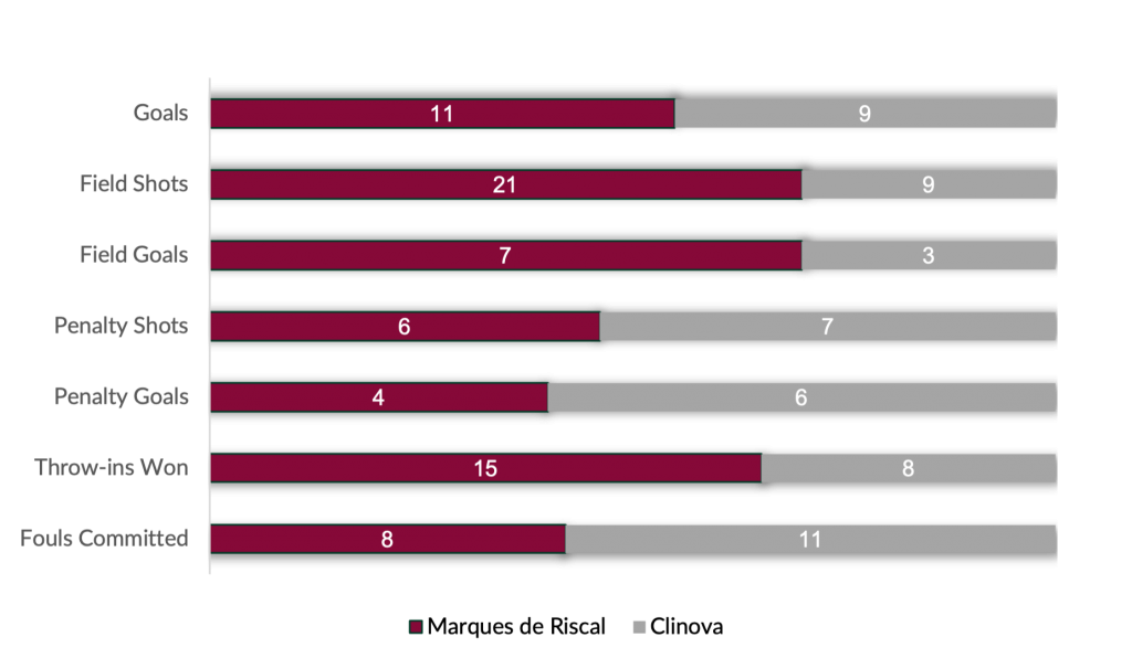 Continuing league play in the Queen’s Cup, a closely contested first half between Marques de Riscal and Clinova kicked-off with the two teams trading goals in the first. Searching for their first victory of the tournament, Marques de Riscal utilized their opportunities from the field on a balanced effort from Alejandro Aznar, Guillermo Caset, and Santiago Cernadas. Held to just two shots in the first half, Clinova’s Jeronimo de Carril struck twice at the line, with Marques de Riscal taking a narrow 5-4 advantage at the break. Swapping scores once more to open the second half, de Carril hit his third conversion of the match, as Chris Mackenzie added his name to the scoreboard for Marques de Riscal on back-to-back drives. Shutting Clinova out in the fifth, del Carril kept Clinova within striking distance, but Marques de Riscal’s ability to find space for all their players to contribute, including a 5-goal performance from Caset allowed the team in red to capture the 11-9 win.