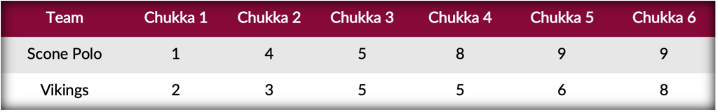 Assembling on the Castle Ground, Rosendo Torreguitar initiated a strong first half effort from Scone Polo, receiving a pass from Adolfo Cambiaso and hitting a neckshot through the goal just fifteen seconds into play. Vikings mounted a response due to the exceptional play of Siri Evjemo-Nysveen, who converted both her shots in the first and second chukkas. Turning to young Poroto Cambiaso, Scone Polo’s young talent scored two penalty goals while adding a third goal off a pass from father Adolfo to put his team ahead by one. A back-and-forth first half concluded with the teams tied at 5-all as Vikings continued to use Evjemo-Nysveen at the front of the game, as she added her third goal on perfect shooting to highlight Vikings’ attack entering the break.