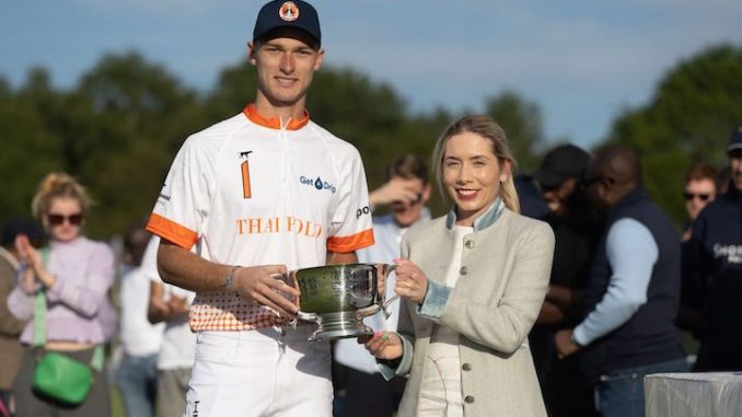 The final game of the day had the added attraction of some silverware for the winners – the Royal Windsor Horse Show Cup. Thai Polo/Get A Drip claimed the cup but not without some drama. The team’s number two, Ned Hine, was injured in the first chukka and had to retire from the match. Jose Araya stepped in to sub and despite this shake-up in personnel, Thai Polo/Get A Drip stayed tight and in control against Adebayo Karim’s Shoreline Polo Team. They were 3-1 up at the end of the first and never relinquished the lead. Shoreline did deliver a scare in the fifth though, fighting back hard and adding four goals onto the scoreboard. Louis Hine received the Royal Windsor Horse Show Cup from Nicola Cole, highlighting the close relationship between Guards Polo Club and the world-renowned Royal Windsor Horse Show, which takes place in Windsor Great Park every May.