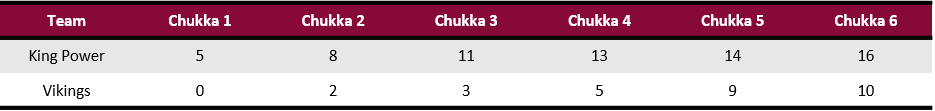 An important game in League Two of the Cartier Queen’s Cup resulted in King Power handing Vikings their first loss with a dominant 16-10 victory on the Duke’s Ground at Guards Polo Club.