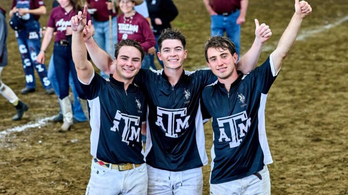 Returning to the Lone Star State for the first time since 2014, the Division I Men’s National Intercollegiate Championship united the nation’s top varsity talent at Prestonwood Polo & Country Club in Oak, Point Texas. Hosted by the DFW Polo Association, four teams assembled from across the country on Thursday, March 27, through Sunday, March 30. In celebration of competition and camaraderie, the battle for the John R. Townsend trophy came down to a showdown between the University of Virginia (Gaston Gomez, Makdum “Mak” Mourad Shah, Vlad Tarashansky, Iago Masias, James Grayken) and Texas A&M University (Zak Coleman, Aiden Meeker, Will Mudra, Tomas Tejera, Jose Andres Solis). A battle of stamina and determination, Texas A&M University (TAMU) took advantage of penalty opportunities while the University of Virginia (UVA) excelled in open play. Requiring overtime to settle the score, Coleman ultimately ended the stalemate in the third round of the shootout, delivering the win, 15-14.