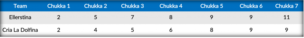 Outscoring Ellerstina to open the fifth, Cria La Dolfina’s Cavanagh and Terrera held Ellerstina to just one goal from Facundo Pieres, as another conversion for Cavanagh tied the match once more at 9-all. Held to one goal in the second half, Ellerstina’s defense stepped up for a shutout chukka of their own, as a goal from Facundo Pieres at the line and another from Ulloa in the field provided just enough breathing room to stave off overtime and claim their spot in the finals with the hard-fought 11-9 victory.