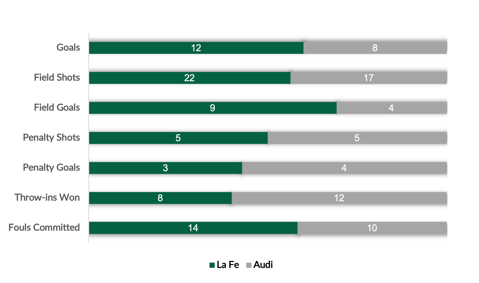 Conceding a Penalty 4 to Castagnola just moments into the game, La Fe stormed back in a dominant first chukker, producing four unanswered goals. Lucas Diaz Alberdi led the attack, with Bilbao and Elizalde passing to goal to collect one assist each. Shooting at goal twice as often as Audi in the opening two chukkers, La Fe extended their lead to three after Elizalde sent the ball through the posts and Bilbao calmly nailed a Penalty 2 conversion. Audi attempted to pressure La Fe before the end of the half, forcing their opponents into five fouls, but it only resulted in one penalty conversion for Castagnola, leaving La Fe with the 7-4 lead entering the break.