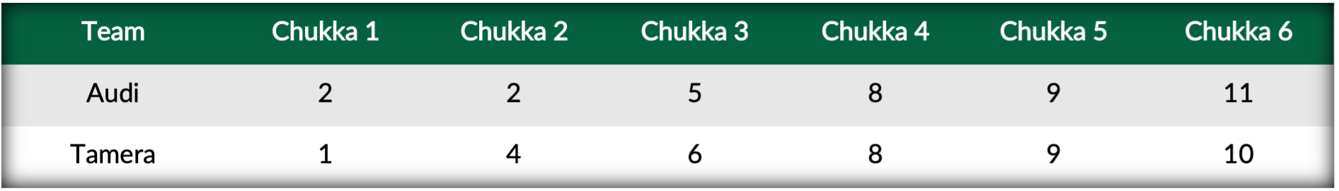 Carrying a 2-0 record into Friday’s matchup, Tamera’s Diego Cavanagh emerged with urgency to continue their winning ways by striking first from the field. Mounting a strong response, Audi began the back-and-forth battle on two quick goals in open play from Matt Coppola, substituting for Jason Crowder, and Bartolome Castagnola. Taking control of the second chukker, Cavanagh’s Penalty 2 ignited a spree of two unanswered goals from Magoo Laprida and Segundo Saravi for a 4-2 Tamera lead. Hitting his first conversion from the 40-yard line, 9-goaler Castagnola combined with Coppola to tie the match 4-all. Breaking the stalemate once again, Saravi found his second from the field, while a Penalty 2 from Cavanagh offset the firepower of Castagnola’s third goal of the half to give Tamera a narrow 6-5 advantage at halftime.