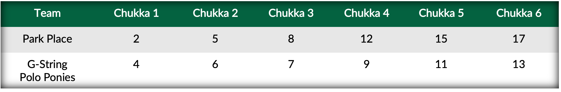 Despite sending Pieres back to the line for two more penalty conversions, Park Place finally saw the offensive spark they had been working for, as Britos and Ulloa combined for four goals in the field to increase their hard-fought lead by three. Continuing their offensive hot streak in the fifth chukker, Britos and Ulloa stuck again for another run of three goals. Keeping themselves in contention, the tightened defense of G-Strong Polo Ponies allowed de Lusarreta to draw a Penalty 1, while Escobar knocked in his only goal of the match. Trailing only by three, G-String Polo Ponies attempted to push for a late comeback, but the offensive strength of Park Place couldn’t be denied, with Britos and Ulloa each scoring once more, combining for fourteen total goals to overtake their opponents 17-13.